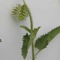 Cultivated at shady margins of vegetable garden and harvested for leafy vegetable. Shallow teeth along margins of pubescent leaves. |