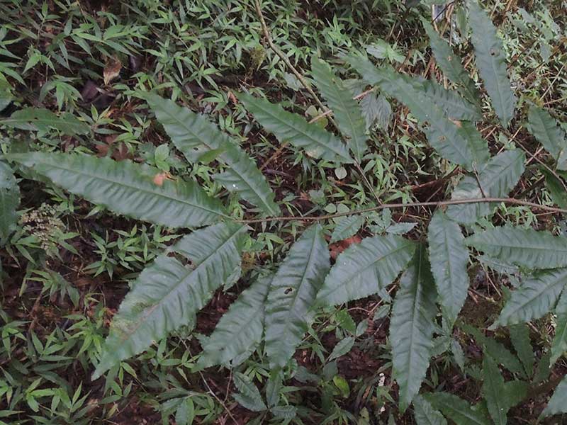 LEAVES: Leaves are arranged in a flat plane. The margins are finely toothed and slightly wavy. Shape is elliptical and are alternate on the stem.