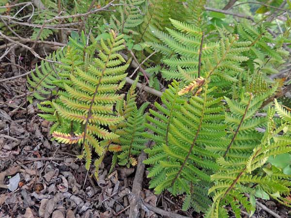 The stems of this fern were found creeping within a narrow, shaded crevice resulting in a row of leaves emerging from the rock on a hilltop. The leaves are once pinnate and light green in color. The final divisions are pinnatifid, i.e. not divided all the way to the rachis. Dryopteridaceae -- a Fern FamilyMore Information: